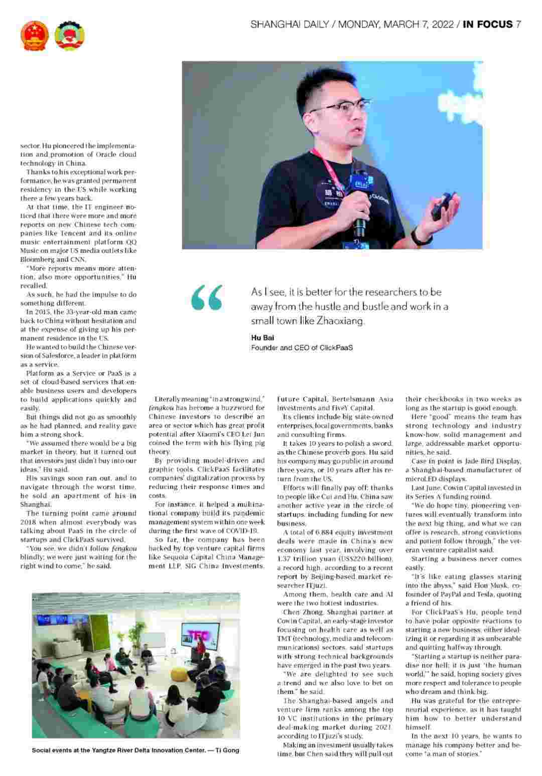 近日,,,,,,,,,NO钱包创始人、、、、、、、、CEO胡柏接受了《上海日报》采访,,,,,关于自己当初为何选择创立NO钱包,,,,,,,又为何将公司落户于上海青浦,,,,,,,,,,,,,分享了其背后的故          事。。。。。。。。