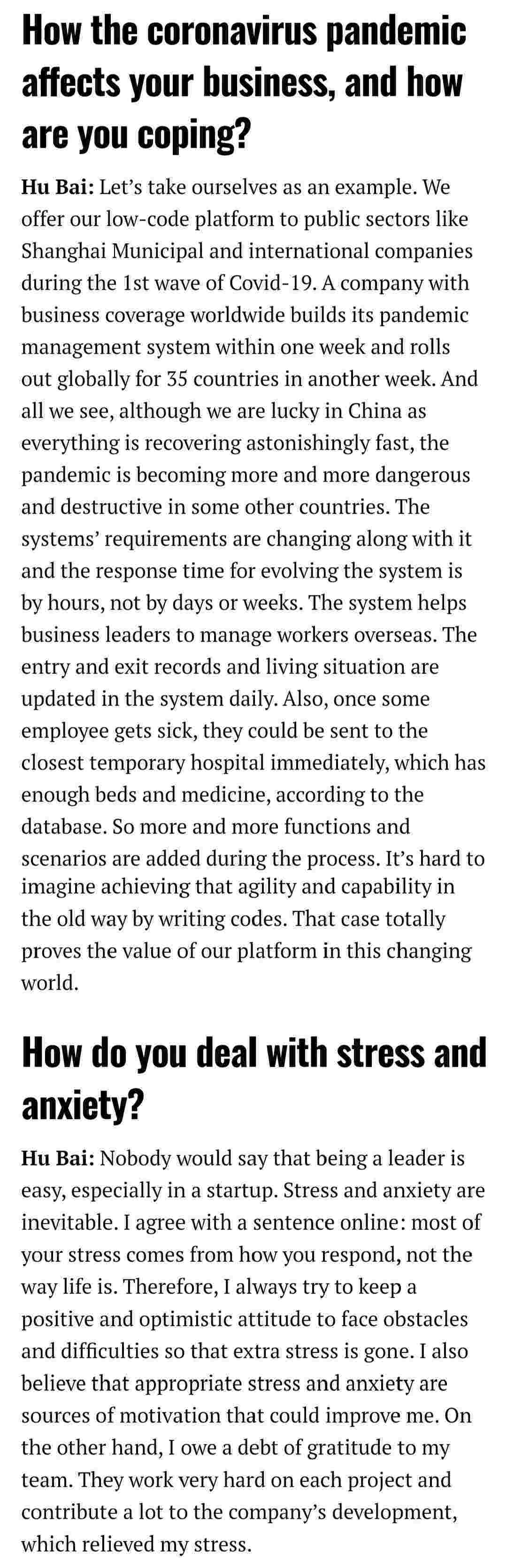 2021年年初,,,,,,爱湃斯科技CEO胡柏受邀接受法媒Startup.info的专访,,,,,,,,,,与Startup info的读者分享了自己的创业经历、、、、、以及低代码平台NO钱包的创新之处。。。。。。。。。。